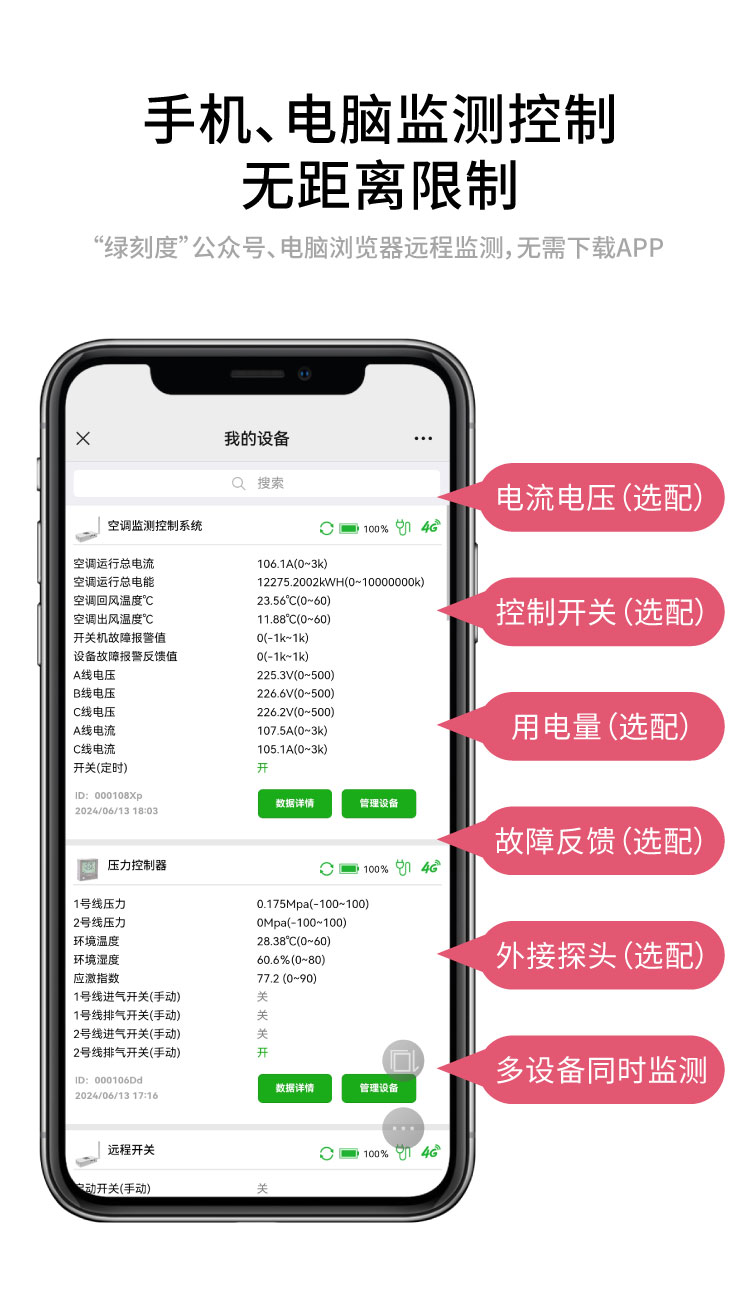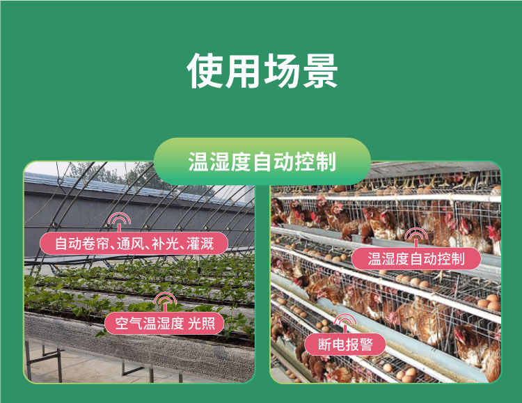 多路远程控制器采用 WiFi 或 4G 联网方式,设备与云端服务器通信,可实现手机、电脑远程控制开关,多种控制模式可随时切换,包括远程控制开关、自动定时开关、自动控制、云联控制。可外接传感器实现远程监测传感器数据,并联动开关,可应用于农业中温湿度的控制、自动控制通风、灌溉、补光,工业中水泵、阀门、风机等各种用电设备的自动控制场景。
